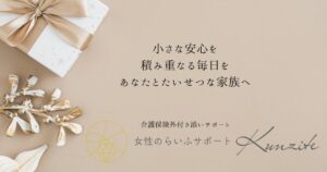 介護する人・される人のどちらもが「その人らしく」いられるように、生まれた【つきそい・見守り・ご家族支援】のサポート事業です。