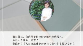 ひとり暮らしの高齢者の白内障手術付き添い。手術後に再受診となった際も安心できるようサポートし、地域の支えと連携の大切さを実感。通院サポートの必要性について紹介します。